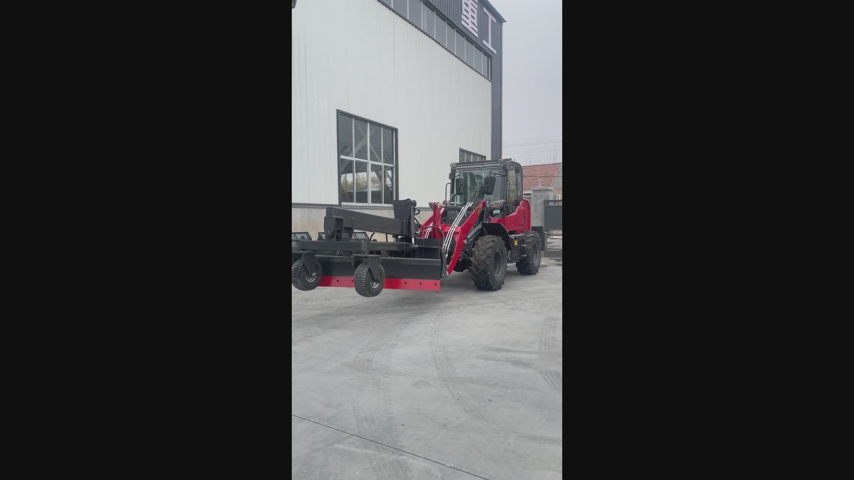 A 2-wheel grader blade attachment for the LX100 wheel loader is designed for precise grading, leveling, and surface smoothing in construction, landscaping, and agricultural applications. The dual wheels provide stability and control, ensuring an even finish across various terrains.